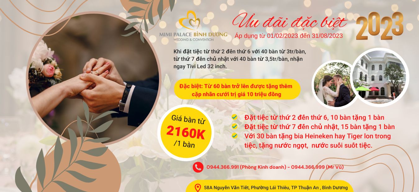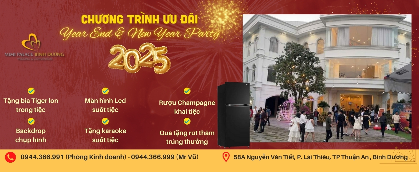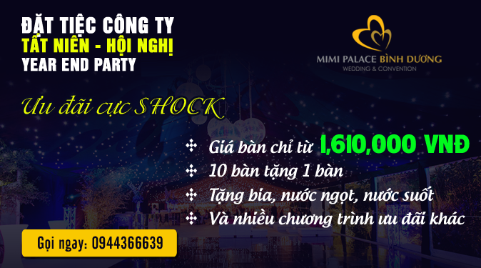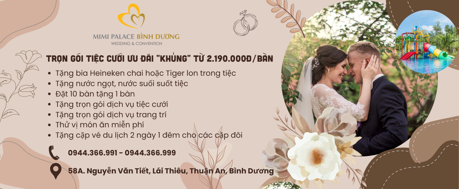 Tổ chức tại Nhà hàng tiệc cưới MiMi Palace Bình Dương, Quý khách hoàn toàn yên tâm về mọi mặt, sự kiện của quý khách chắn chắn sẽ thành công mỹ mãn ngoài mong đợi.