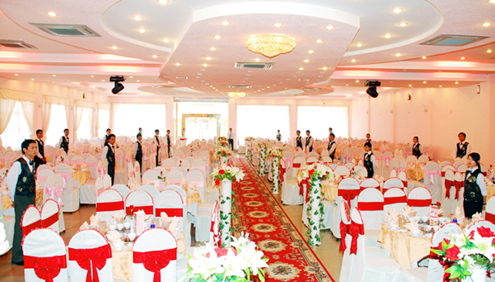 Sảnh tiệc 1 được tạo dựng với mong muốn để lại 1 dấu ấn đẹp cho tình yêu vĩnh cửu của các đôi uyên ương.